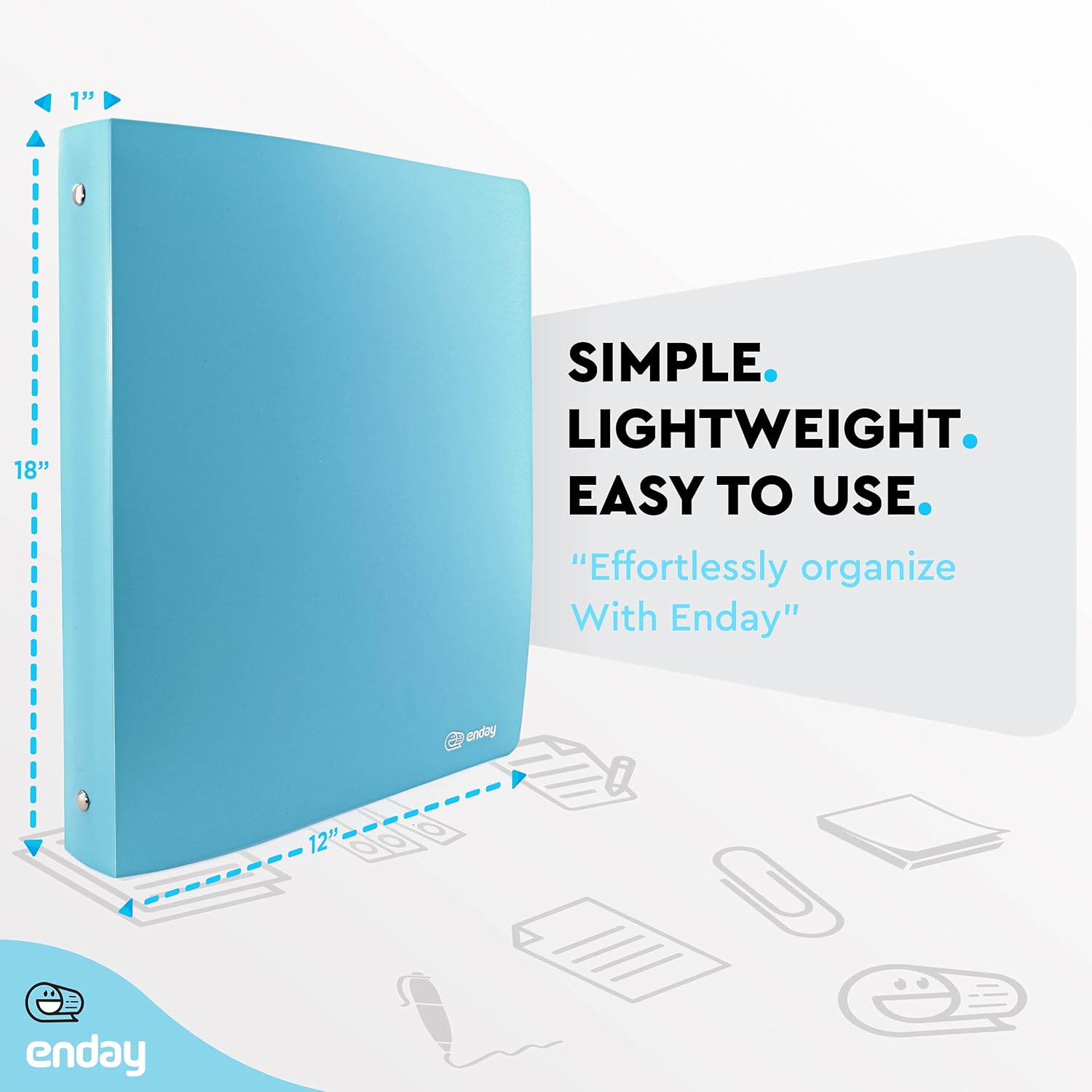 1 Inch Binders 3 Ring Blue, 1†Soft Plastic Flexible Cover Round Ring with a Pocket Binder, Holds 175 Sheets, School Supplies Available in Pink, Purple, Red, Green, Grey, 2 PK – by Enday