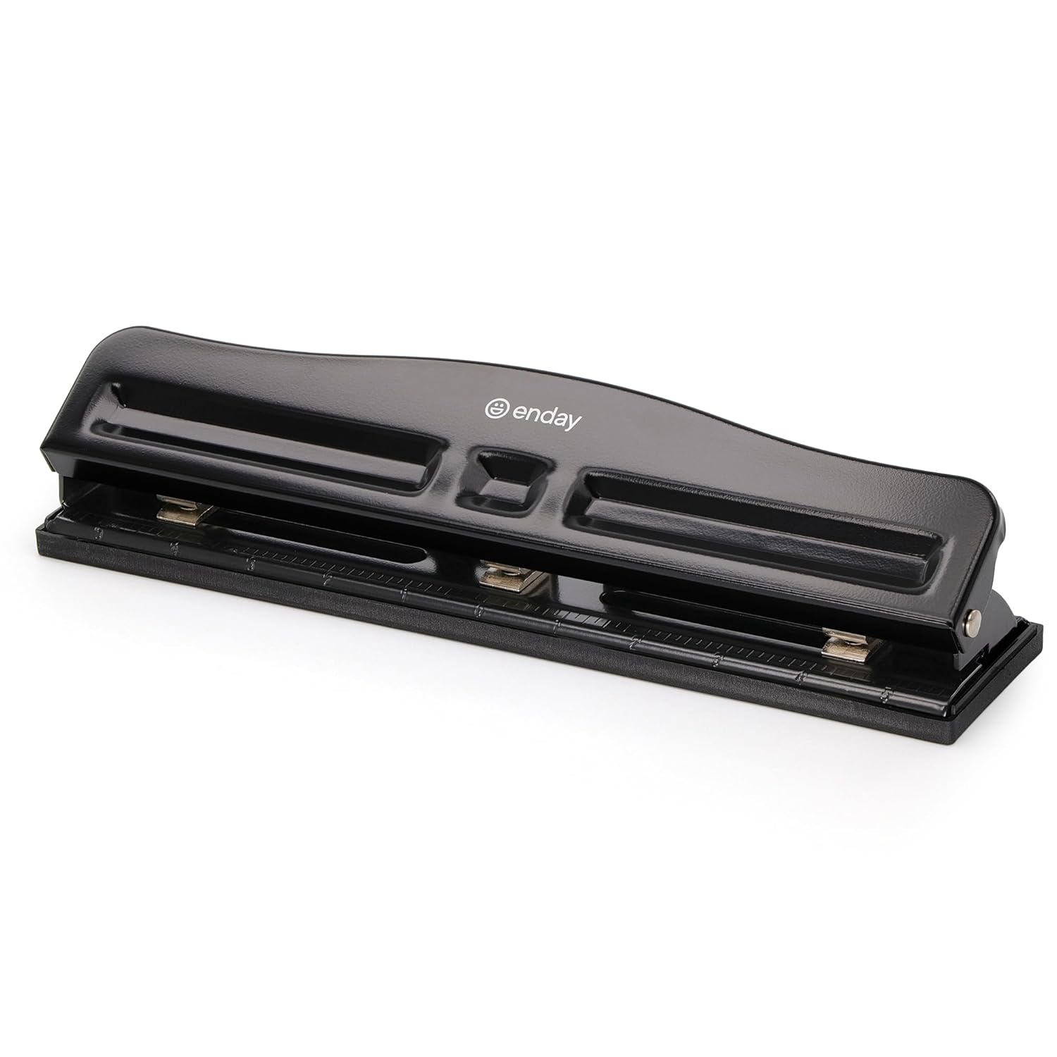 3 Hole Punch Heavy Duty, 3 Ring Hole Puncher for Binder, 10 Sheet Adjustable Paper Punch, Metal Three Hole Punch with Built-in Waste Chip Tray, Desktop 3 Hole Puncher Rubber Base, Black - by Enday
