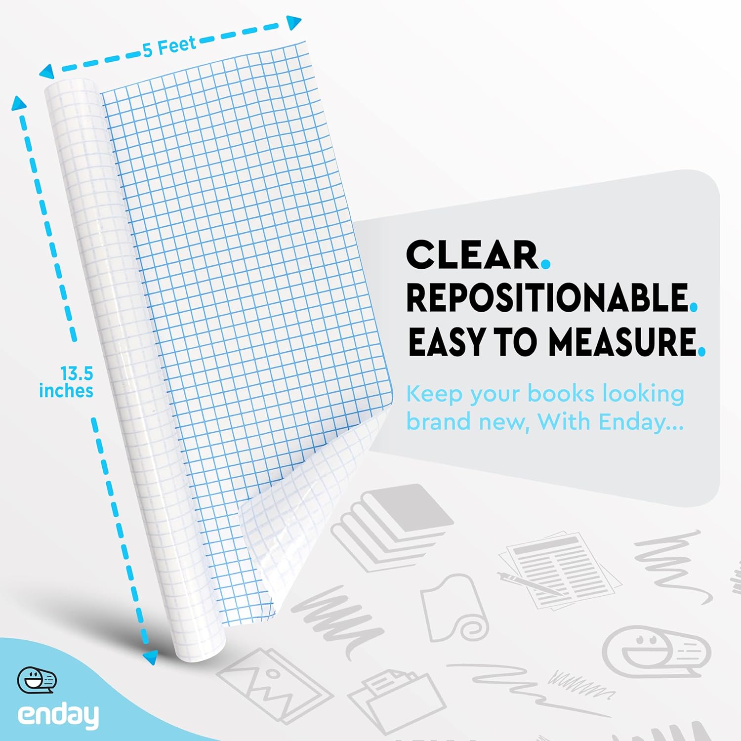 Contact Paper Clear, 13.5†x 5-Feet, Transparent Self Adhesive Book and Textbook Covers for Paperbacks and Hard Covers, Plastic Protective Covering Contact Paper Roll, Acid Free – by Enday