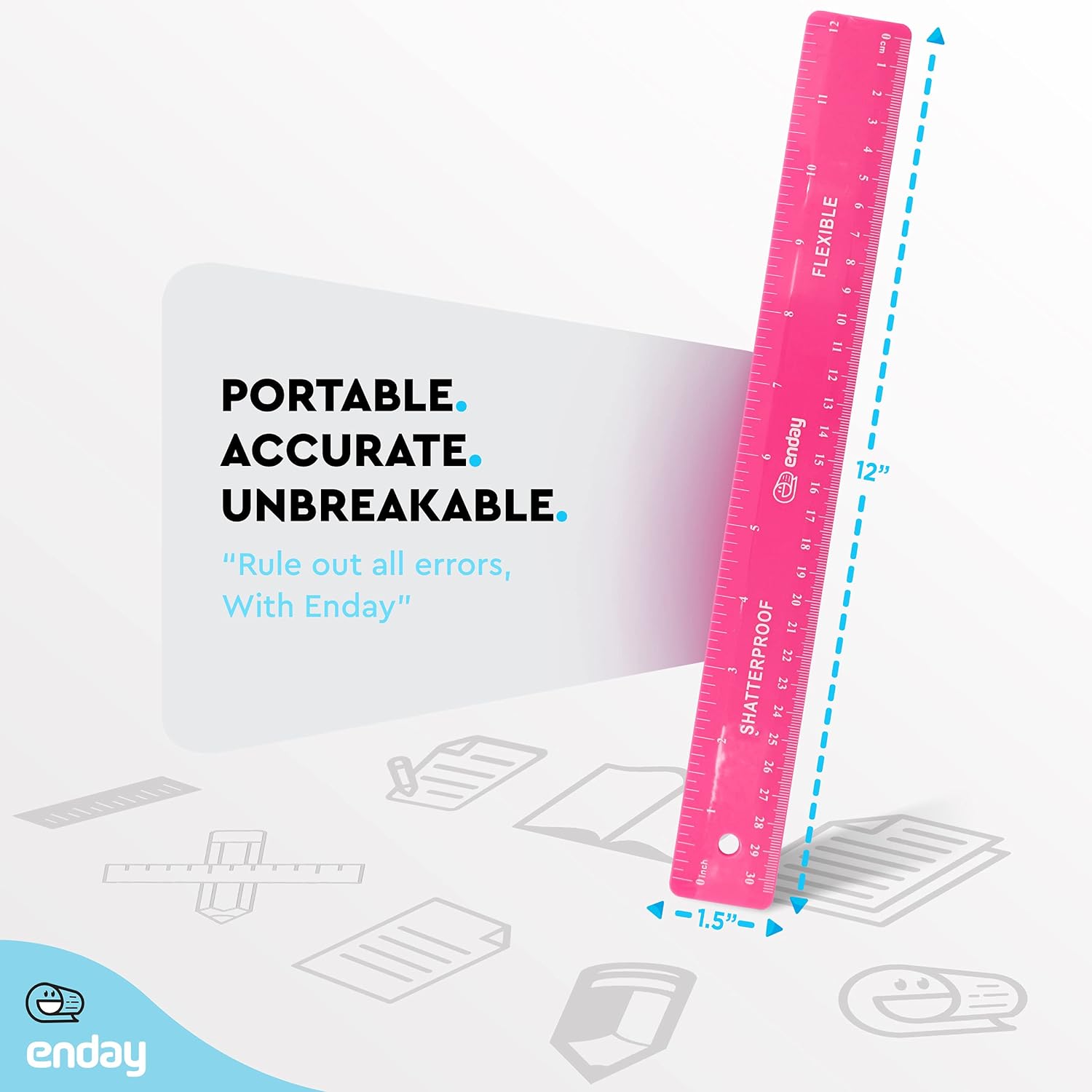 Emraw 12 inches (30 cm) Shatterproof Flexible Rulers Designed in Black, Blue, Green, Pink, Purple, and Orange - Great for School, Home, & Office – (6 Pack)
