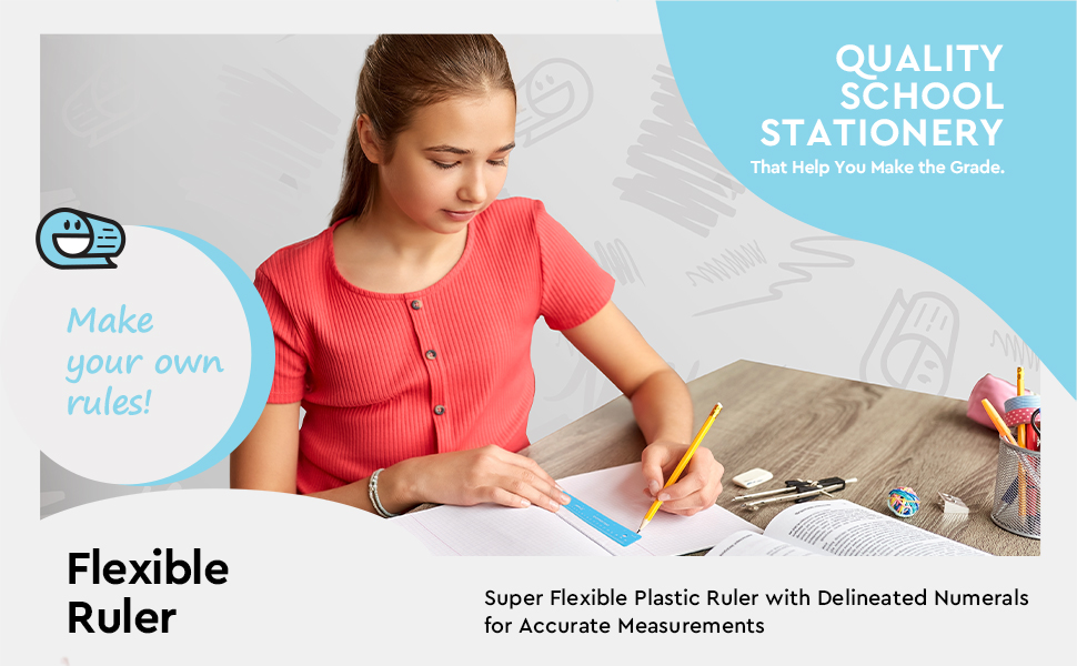 The ruler measures in inches and metrics for the ease of all consumers. The flexible ruler’s measurement range is up to 12 inches/ 30 cm. With accurate dual scales this 12inch ruler will give exact measurements and can be used without concern. The round edges make the ruler safe and an exemplary choice for kids at school.