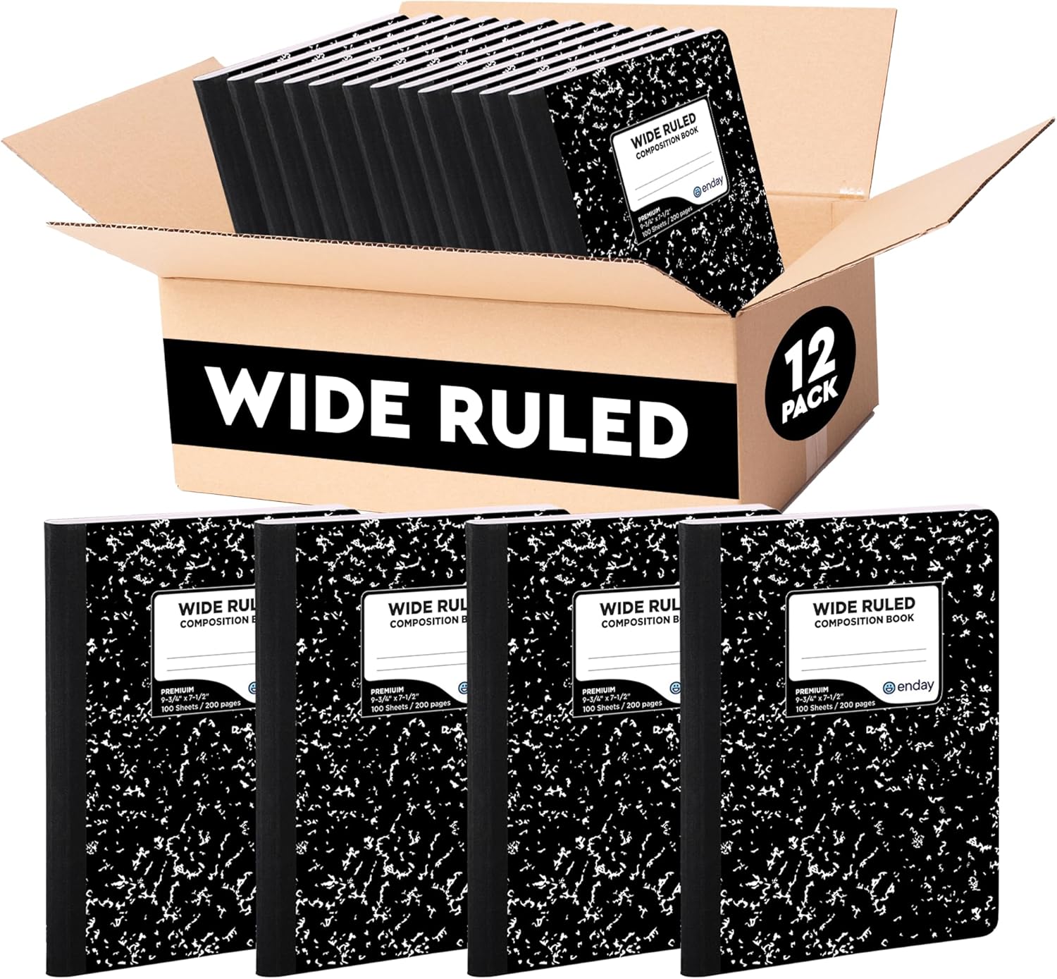The school book composition college ruled notebook has durable covers and secure sewn binding keeps the inner white papers of the notebooks composition clean, dry and protected. The black and white notebook is a 100 sheet composition notebook which gives you the ability to manage notes for projects in one place. The college ruled notebook composition note book covers are coated for durability and have a class schedule to keep you on track. Teachers like this 200 page composition notebook because you can't rip out a page without them knowing, this way they can see all your work.