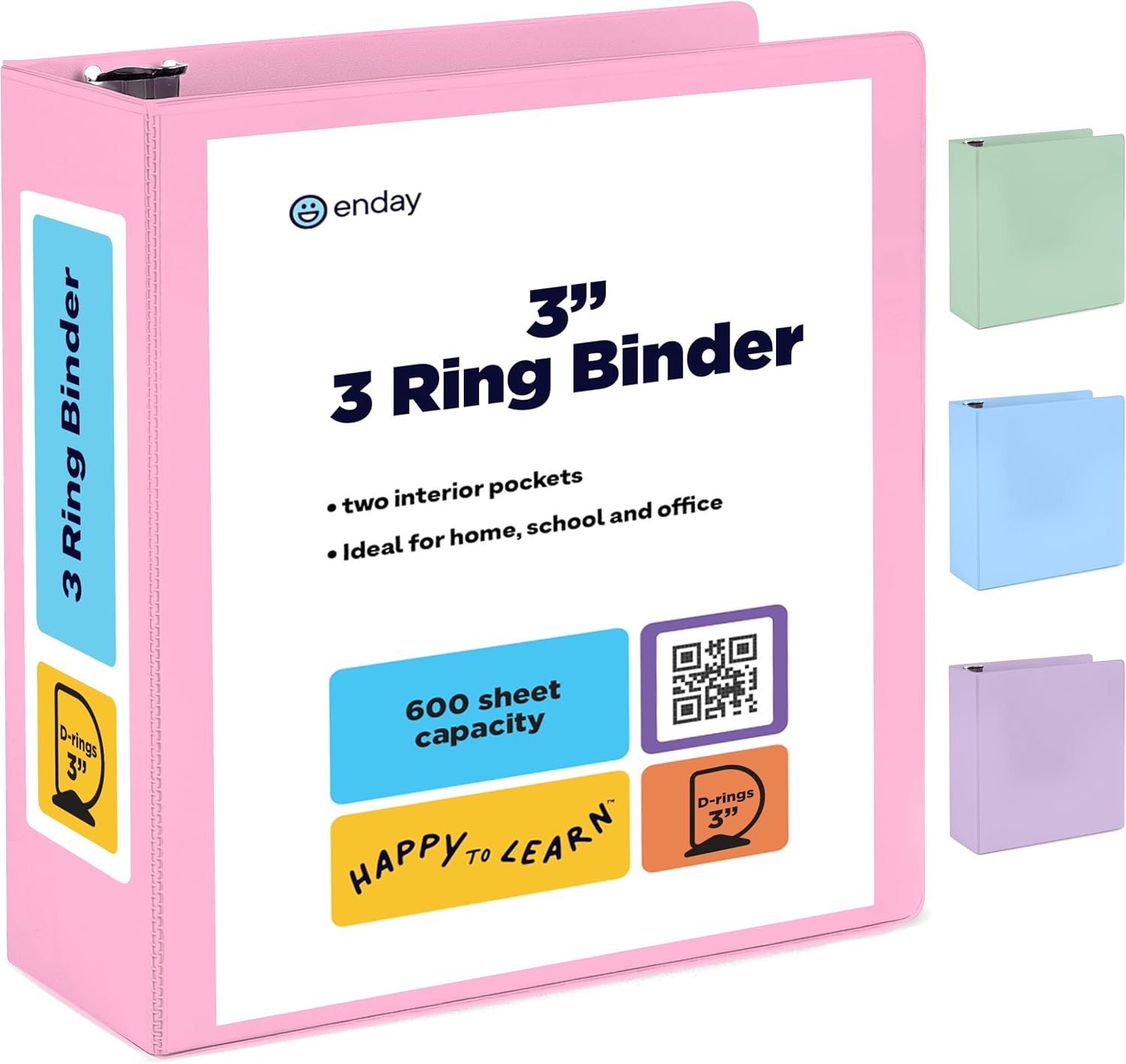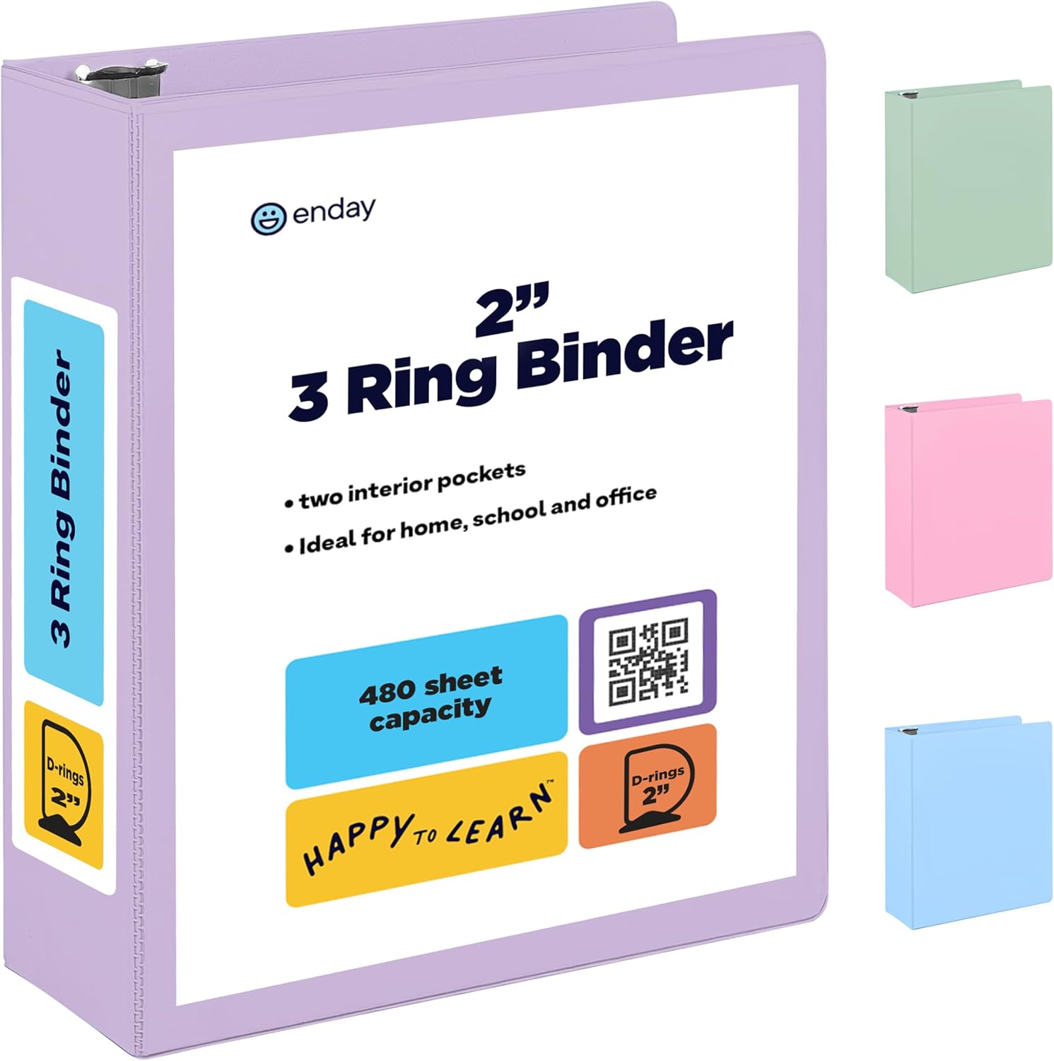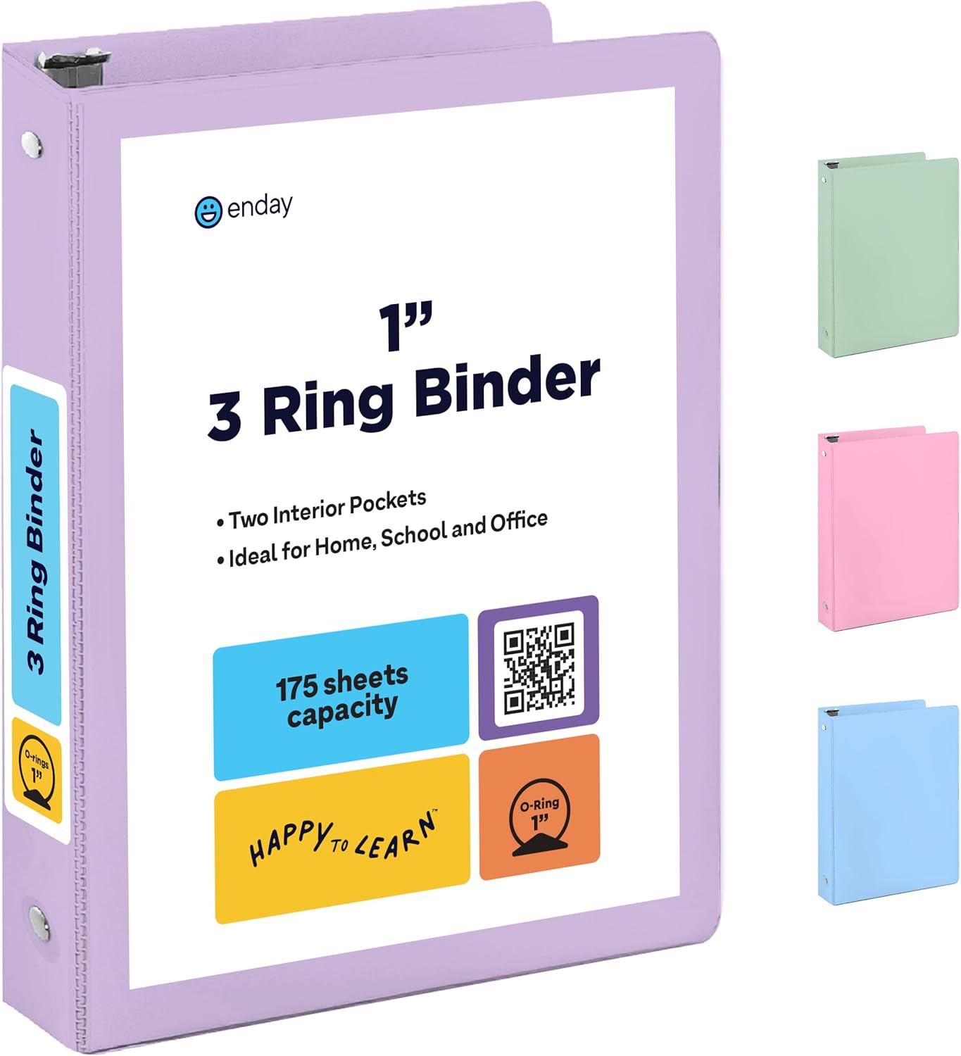 Enday Binders Pastel 3 Ring Binder, Clear View Cover for Letter Size 8.5 x 11'' Paper & 2 Inside Pockets, Ideal for School Supplies, Office, and Home (select inch size)