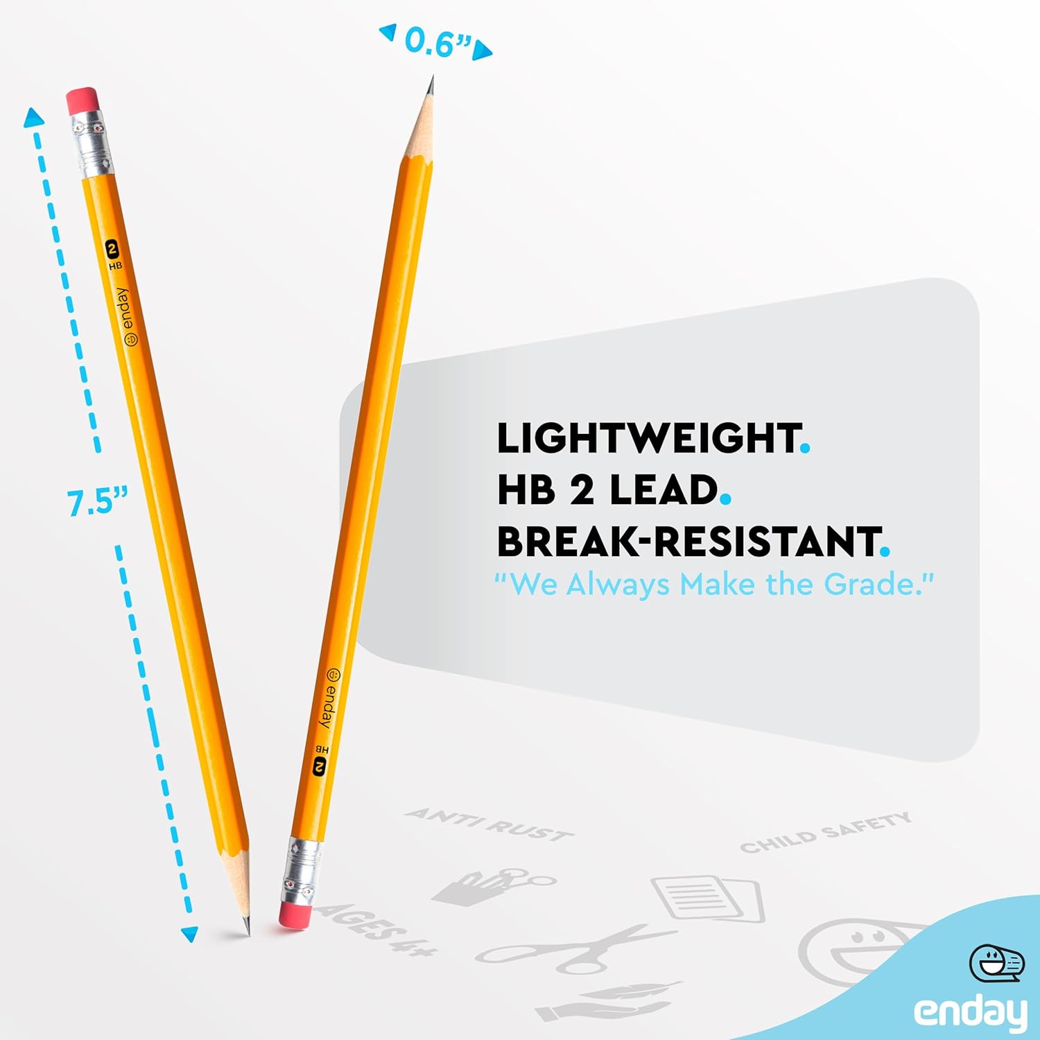 Enday #2 Pencils Bulk - 144 Pack - Pre-sharpened pencils #2 Wood-Cased Yellow Sharpened Pencils for Kids with Latex-Free Eraser Top for Office and Classroom Supplies.