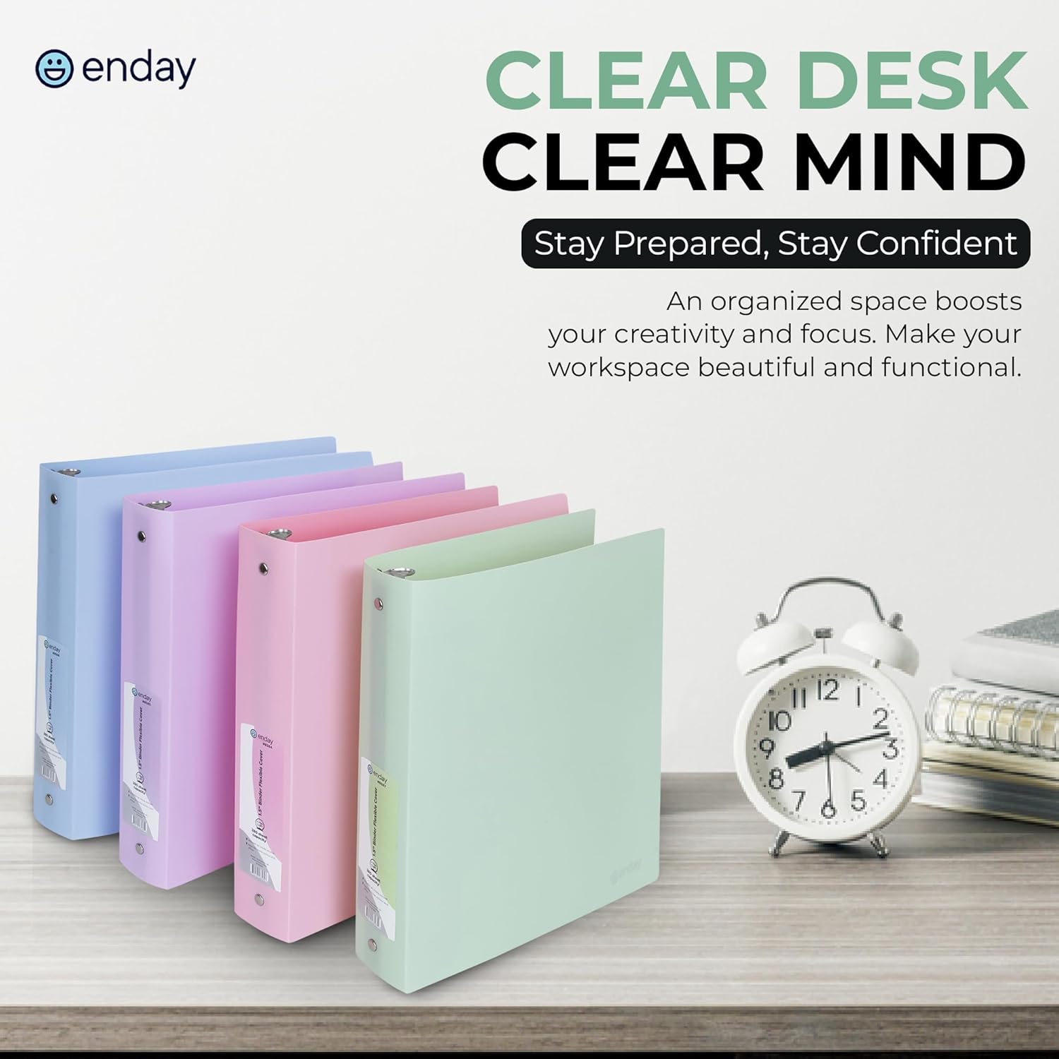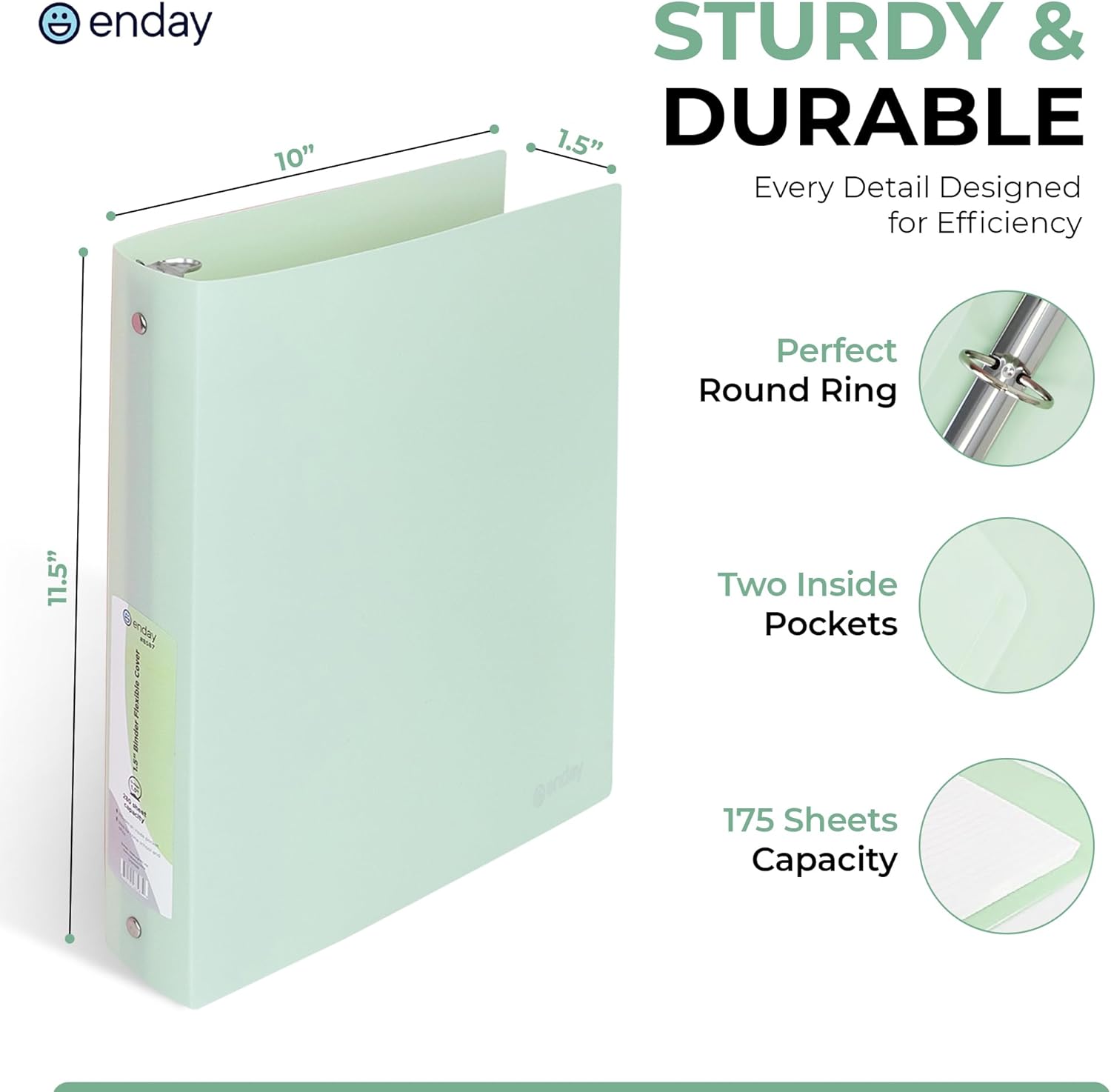 Enday 3 Ring Binder 1.5 inch (4 Pack) Pastel Flexible Binders Round Ring with Pocket, Holds 280 Sheets, for Home and School Supplies in Blue, Purple, Pink and Green – by Enday