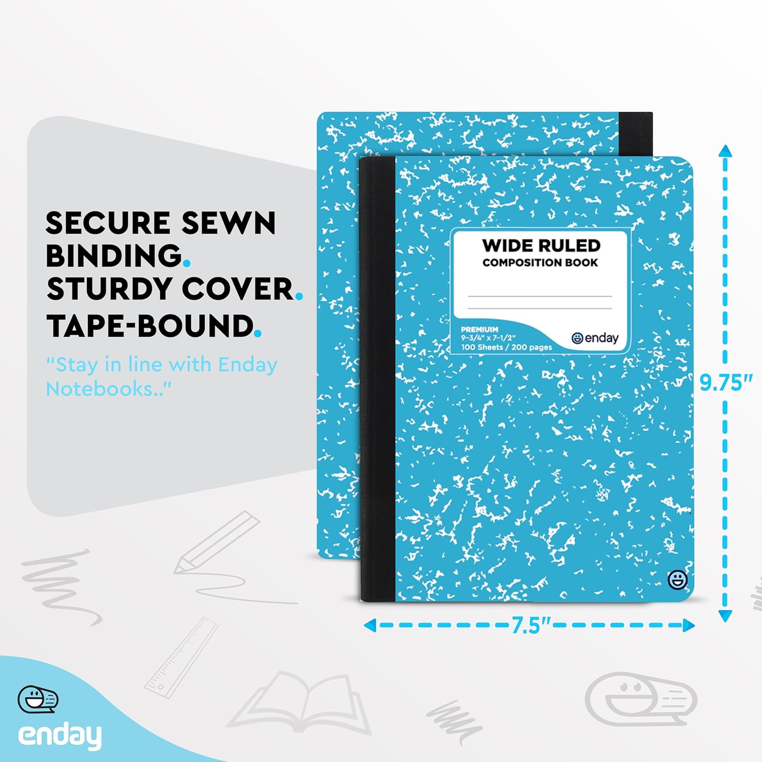 Enday Composition Notebooks Wide Ruled Paper, Colored Marble Composition Notebook Covers, 100 Sheets (200 pages) Composition Books, Marble Notebooks Wide Ruled For School, Blue And Purple, 2 Pack