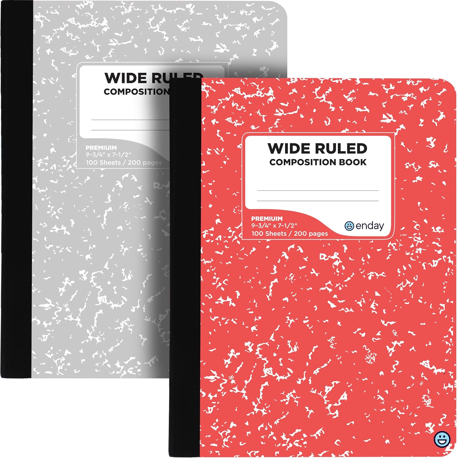 The wide rule composition notebook with durable covers and secure sewn binding keeps the inner white papers clean, dry and protected. The marbled composition notebook wide ruled gives you the ability to manage notes for projects in one place. The bound notebook covers are coated for durability and have a class schedule to keep you on track. Teachers like it because you can't rip out a page without them knowing, this way they can see all your work.