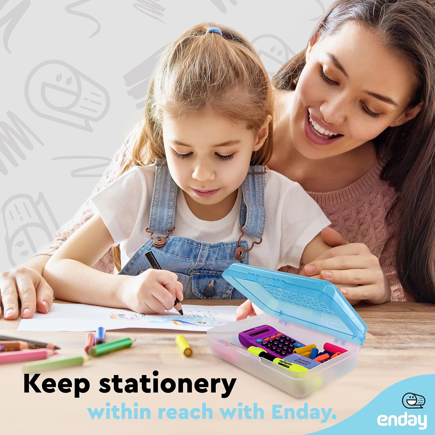 The pencil box plastic studded design is ideal to neatly organize smaller items. The durable-colored lid, that’s secured to the base, keeps contents in place. The semi-clear hinged lid allows for ease of use and accessibility. It’s designed to stack securely on top of one another. It also accommodates supplies for all ages, from grade school to teachers and adults such as pencils, pens, markers, highlighters, paintbrushes, office supplies, craft/school scissors, glue sticks, and crayons.