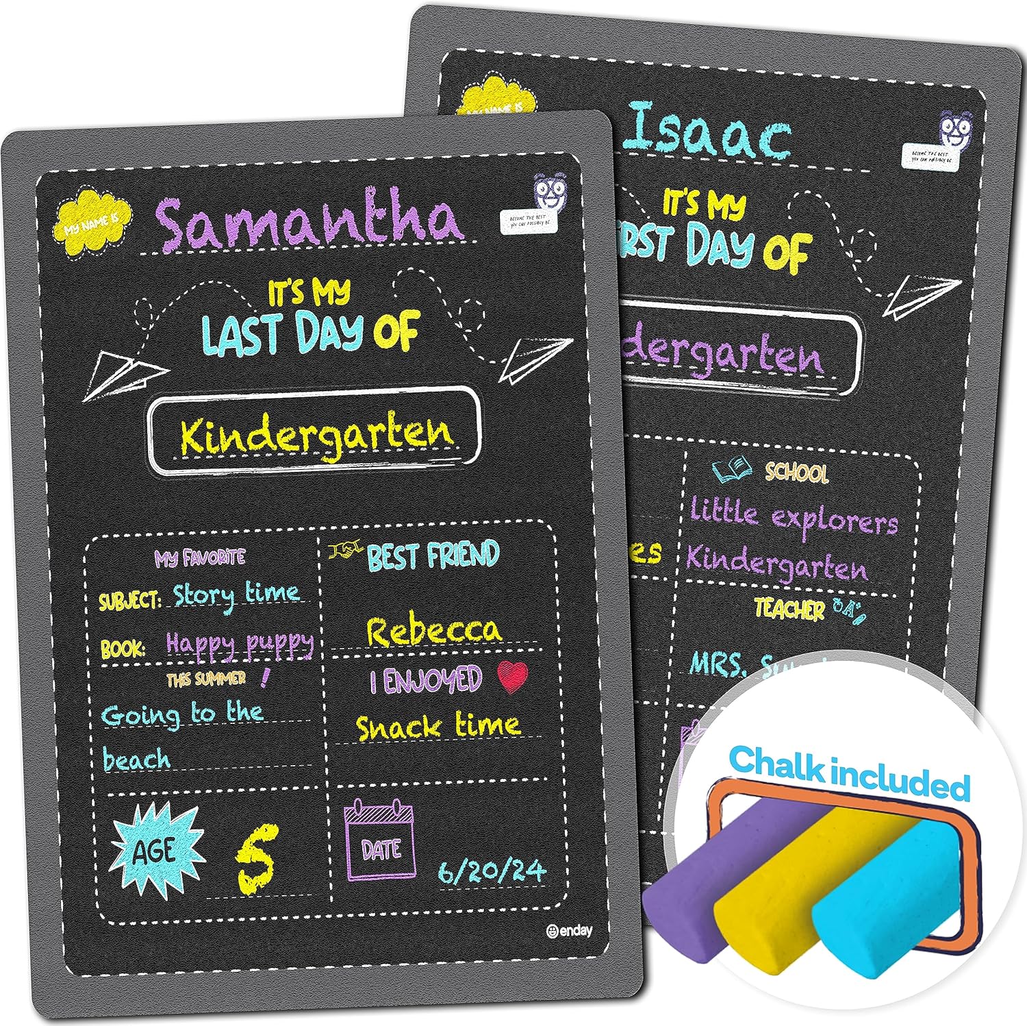 First and Last Day of School Board, 14†X 11†Double-Sided Back to School Signs, My First Day of School Chalkboard Sign for Kids, 1st Day of School Sign Preschool Kindergarten Photo Props - by Enday