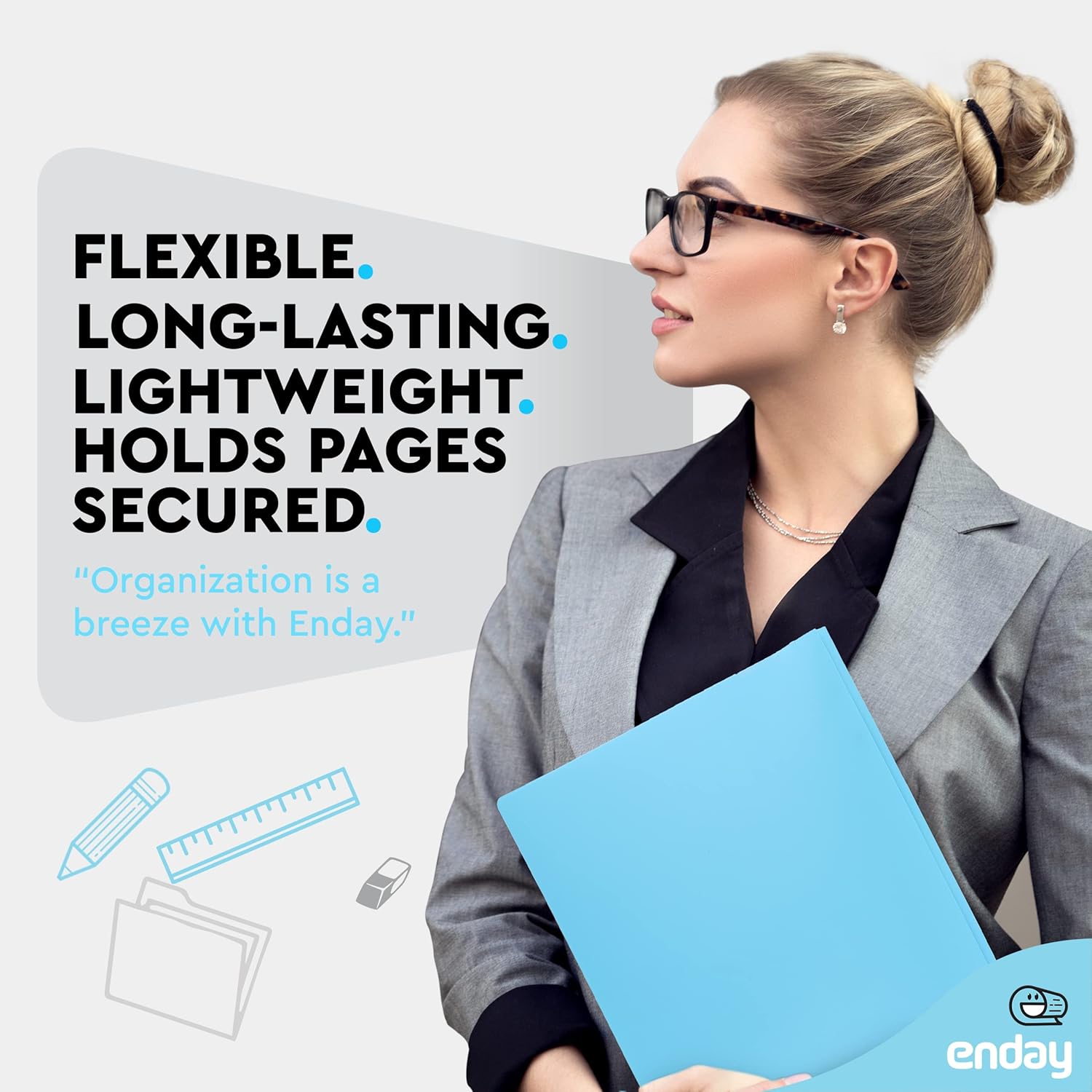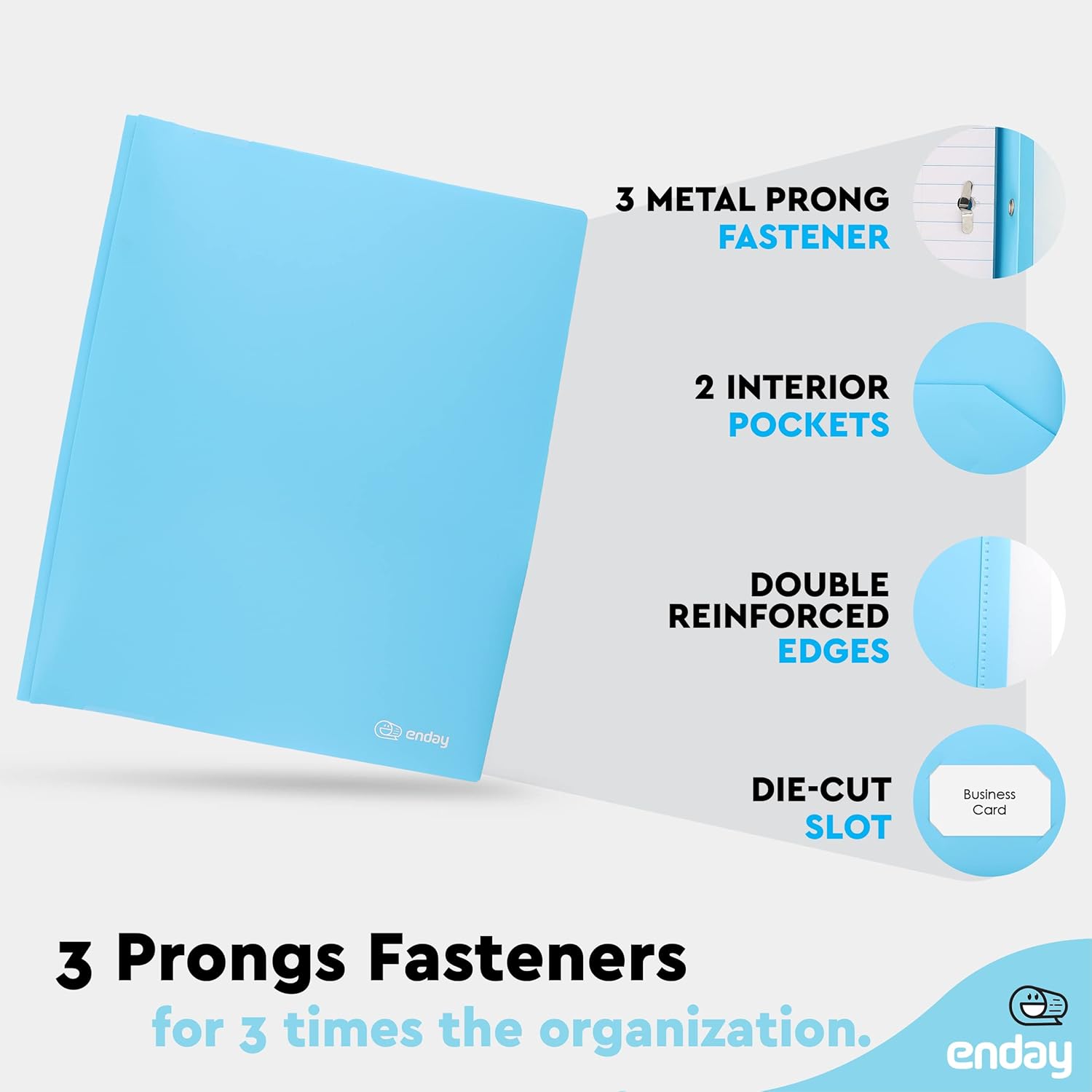 Plastic Folders with Pockets and Prongs Blue - Two Pocket Folder with Brads - 3 Prong Folders with Pockets for Letter Size Sheets, Also Available in Purple, Green, Red, Pink, and Grey, 1 Pc –by Enday