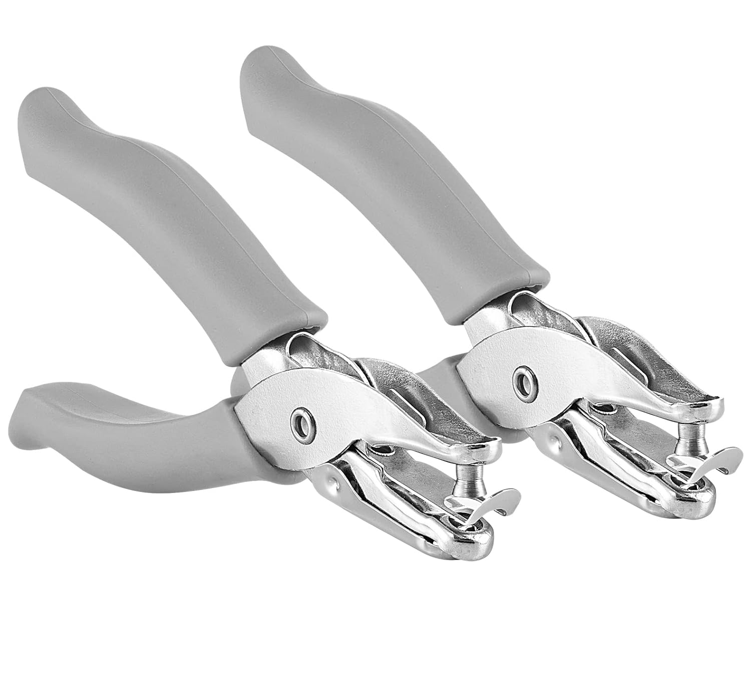 These premium paper punchers are made from top quality metal materials. They cut crisply and cleanly so papers will have neat and full circles. The rubber hand grip on the handles makes it comfortable to hold for repetitive use. They can be used on any kind of paper, leather plastic, cardboard and more.