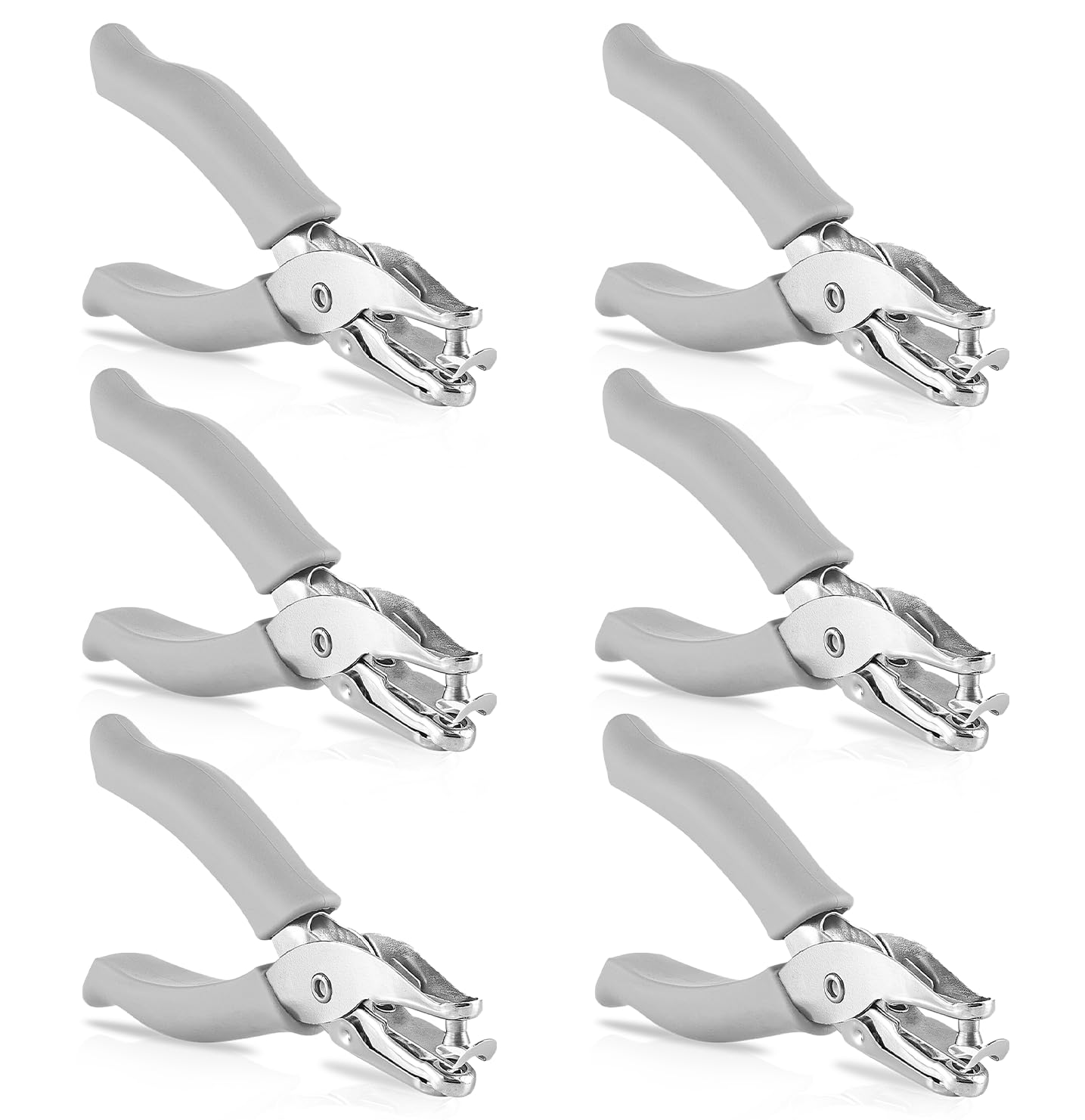 These premium paper punchers are made from top quality metal materials. They cut crisply and cleanly so papers will have neat and full circles. The rubber hand grip on the handles makes it comfortable to hold for repetitive use. They can be used on any kind of paper, leather plastic, cardboard and more.