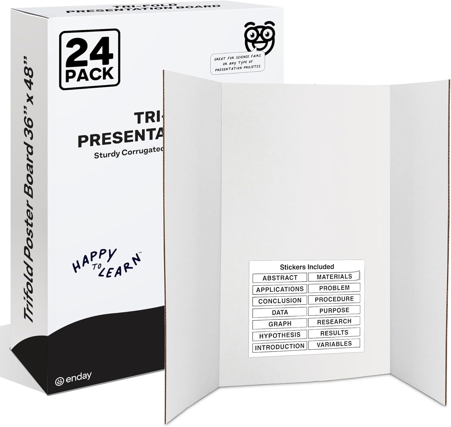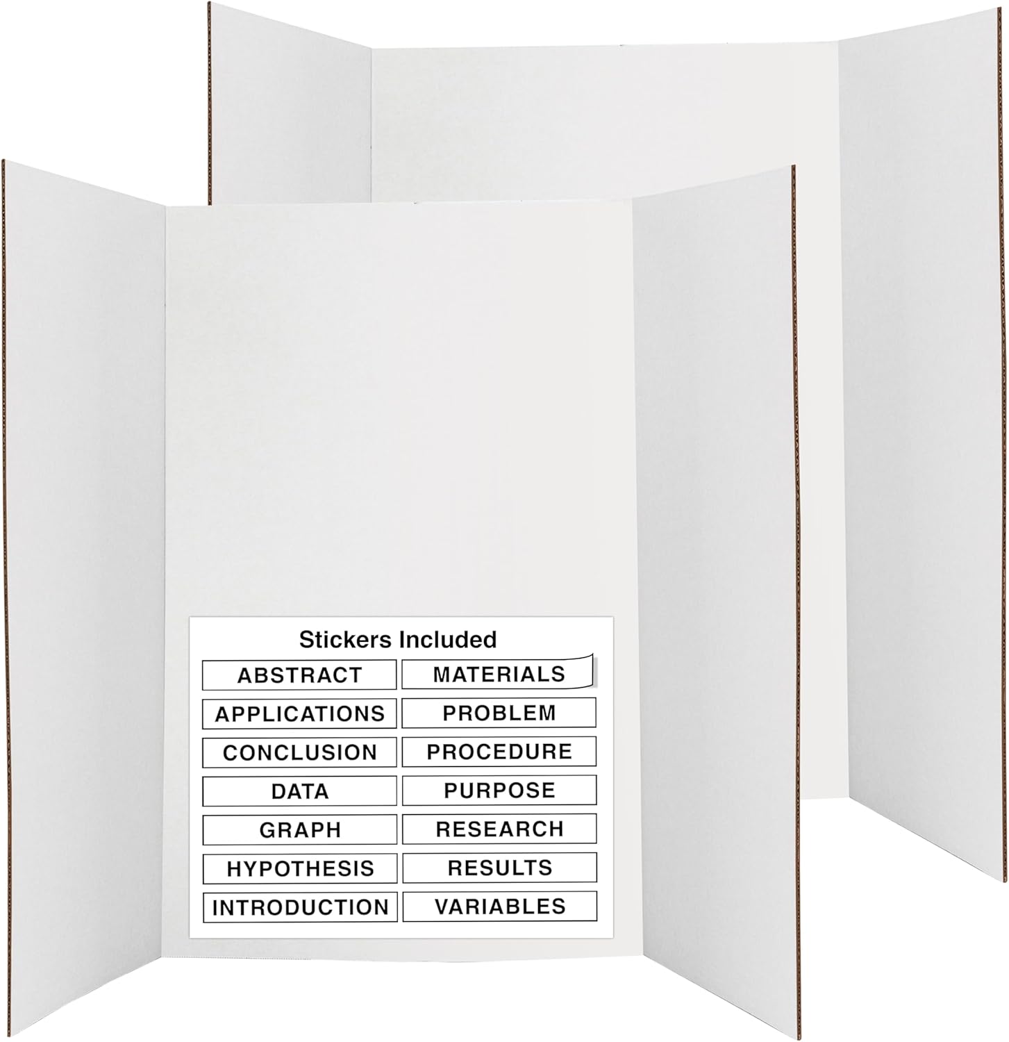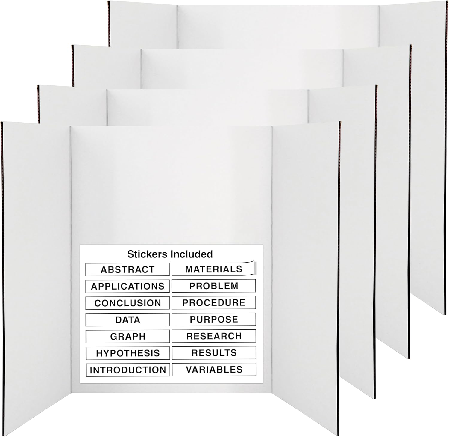 White Trifold Presentation Board 36" x 48" (Pack of 2) Self-Adhesive Science Subtitles Included - Display Exhibition Board Lightweight and Portable with Smooth Surface - By Emraw
